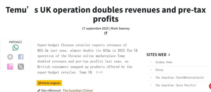 据媒体报道,受益于英国消费者对低价商品的强劲需求,中国跨境电商平台Temu在英国的业务于去年实现收入与税前利润双双翻倍。